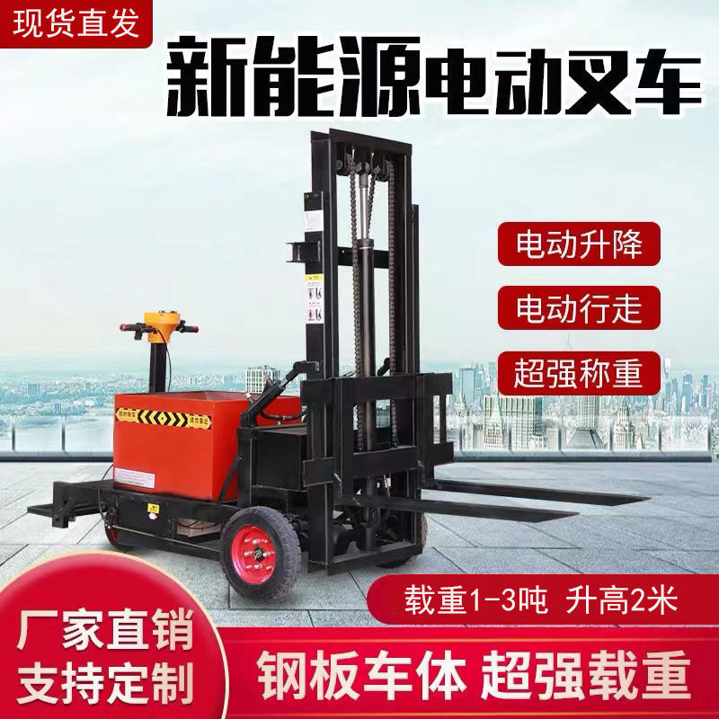 皋兰县小型电动叉车1吨站驾式2吨液压升高铲车全自动仓储堆高车